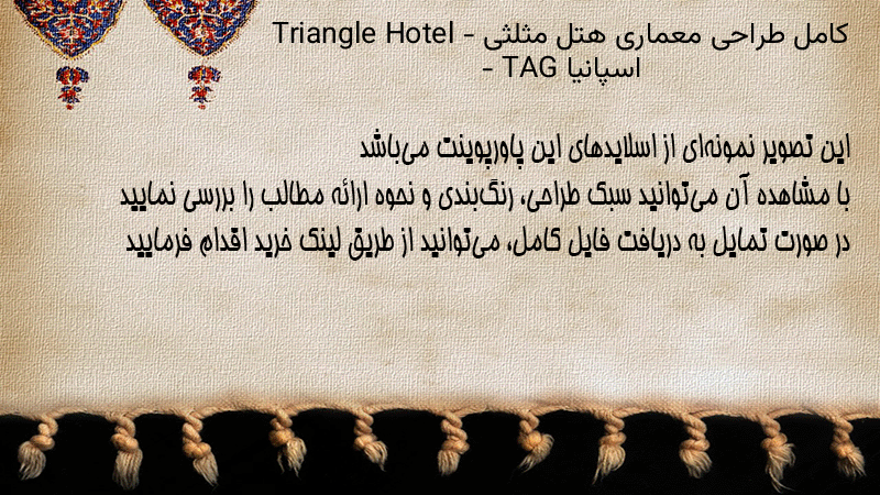 پاورپوینت کامل طراحی معماری هتل مثلثی Triangle Hotel – اسپانیا – TAG