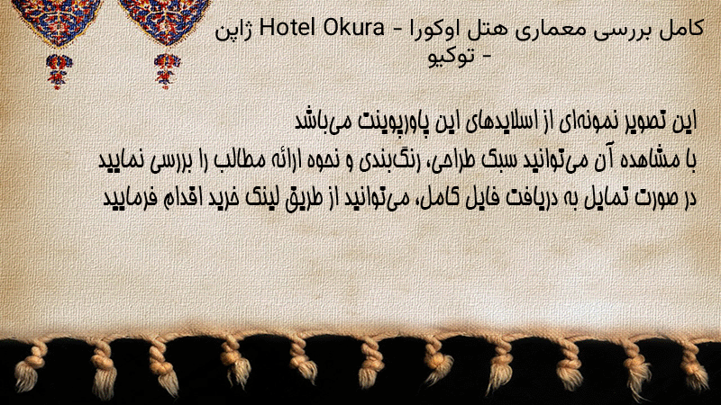 پاورپوینت کامل بررسی معماری هتل اوکورا Hotel Okura – ژاپن – توکیو