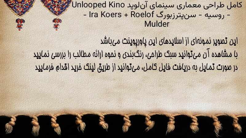 پاورپوینت کامل طراحی معماری سینمای آنلوپد Unlooped Kino – روسیه – سنپترزبورگ – Ira Koers + Roelof Mulder