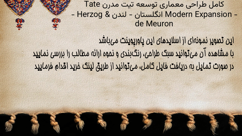 پاورپوینت کامل طراحی معماری توسعه تیت مدرن Tate Modern Expansion – انگلستان – لندن – Herzog & de Meuron