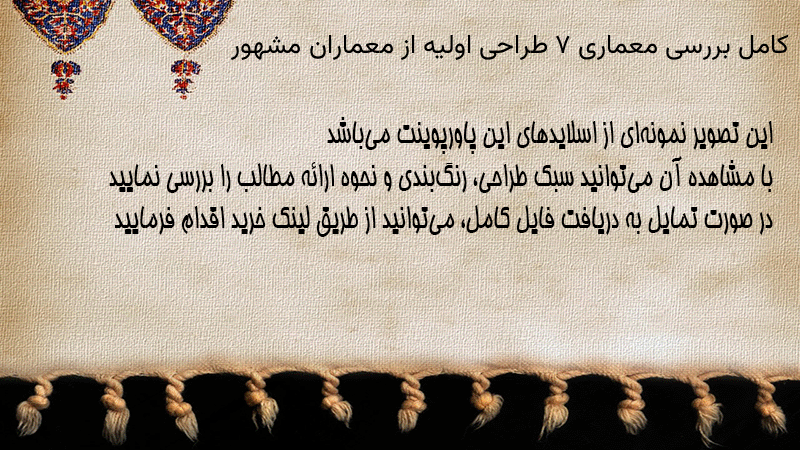 پاورپوینت کامل بررسی معماری ۷ طراحی اولیه از معماران مشهور