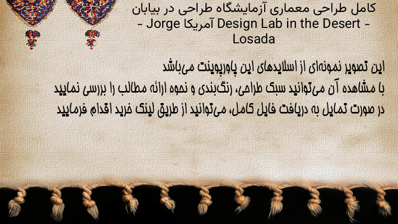 پاورپوینت کامل طراحی معماری آزمایشگاه طراحی در بیابان Design Lab in the Desert – آمریکا – Jorge Losada