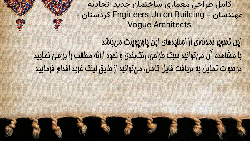 پاورپوینت کامل طراحی معماری ساختمان جدید اتحادیه مهندسان Engineers Union Building – کردستان – Vogue Architects