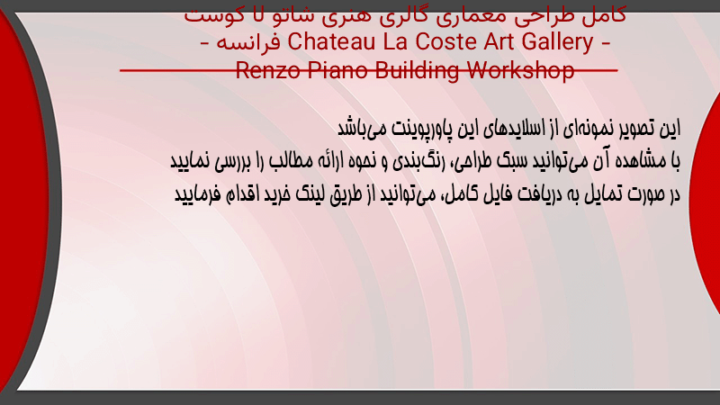 پاورپوینت کامل طراحی معماری گالری هنری شاتو لا کوست Chateau La Coste Art Gallery – فرانسه – Renzo Piano Building Workshop
