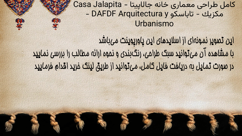 پاورپوینت کامل طراحی معماری خانه جالاپیتا Casa Jalapita – مکزیک – تاباسکو – DAFDF Arquitectura y Urbanismo