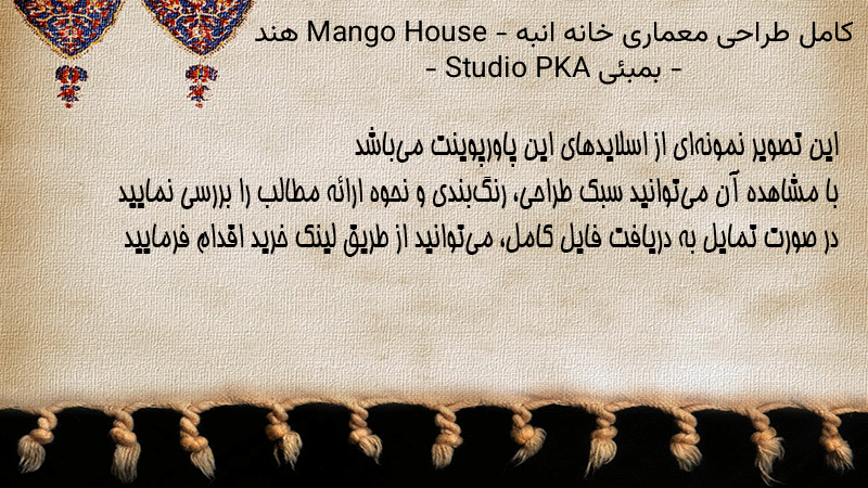 پاورپوینت کامل طراحی معماری خانه انبه Mango House – هند – بمبئی – Studio PKA