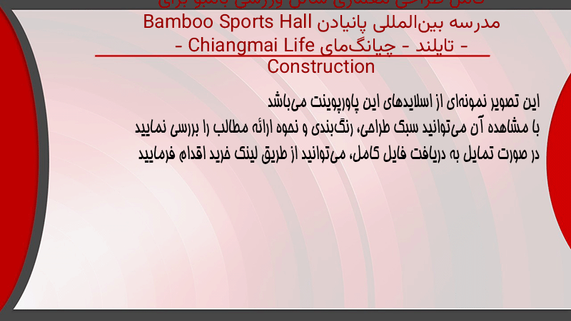 پاورپوینت کامل طراحی معماری سالن ورزشی بامبو برای مدرسه بینالمللی پانیادن Bamboo Sports Hall – تایلند – چیانگمای – Chiangmai Life Construction