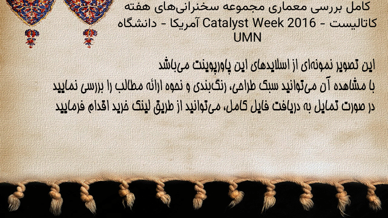 پاورپوینت کامل بررسی معماری مجموعه سخنرانیهای هفته کاتالیست Catalyst Week 2016 – آمریکا – دانشگاه UMN