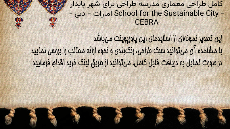 پاورپوینت کامل طراحی معماری مدرسه طراحی برای شهر پایدار School for the Sustainable City – امارات – دبی – CEBRA