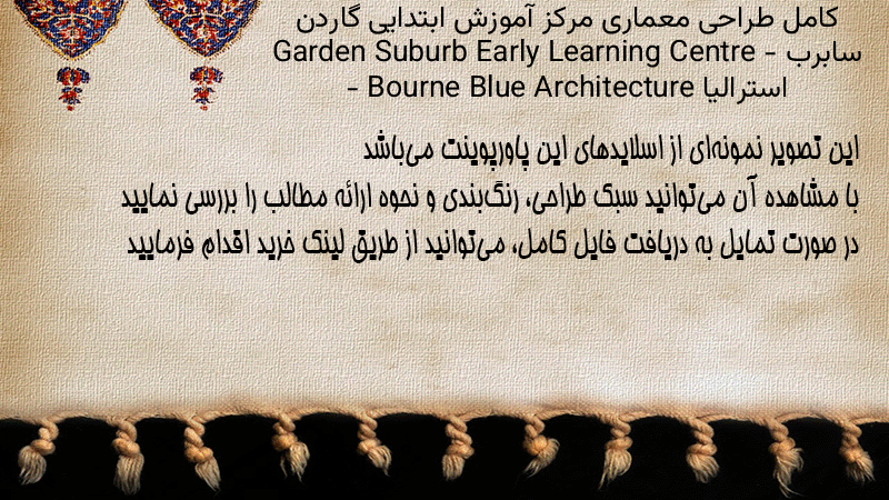 پاورپوینت کامل طراحی معماری مرکز آموزش ابتدایی گاردن سابرب Garden Suburb Early Learning Centre – استرالیا – Bourne Blue Architecture