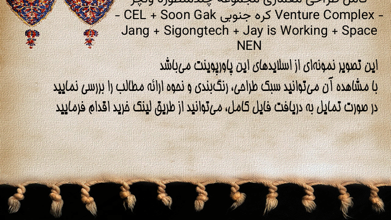 پاورپوینت کامل طراحی معماری مجموعه چندمنظوره ونچر Venture Complex – کره جنوبی – CEL + Soon Gak Jang + Sigongtech + Jay is Working + Space NEN
