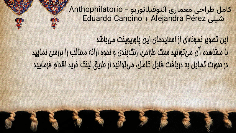 پاورپوینت کامل طراحی معماری آنتوفیلاتوریو Anthophilatorio – شیلی – Eduardo Cancino + Alejandra Pérez