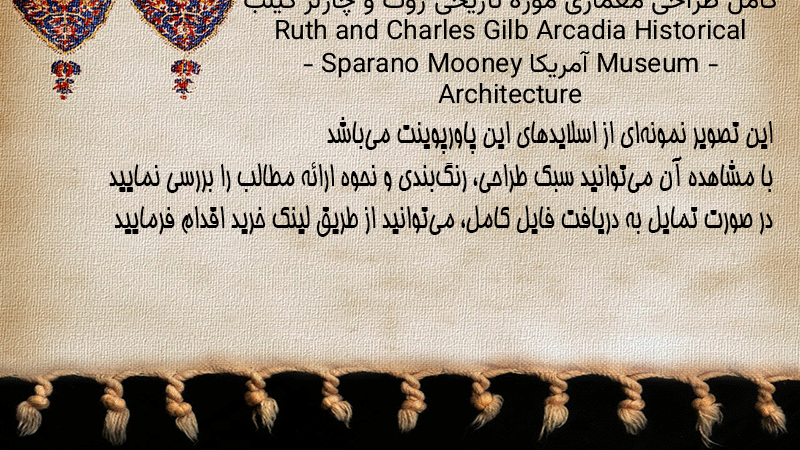 پاورپوینت کامل طراحی معماری موزه تاریخی روث و چارلز گیلب Ruth and Charles Gilb Arcadia Historical Museum – آمریکا – Sparano Mooney Architecture