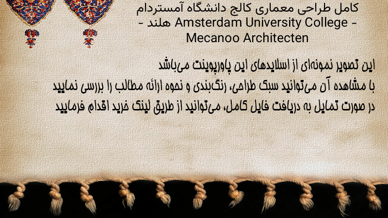 پاورپوینت کامل طراحی معماری کالج دانشگاه آمستردام Amsterdam University College – هلند – Mecanoo Architecten