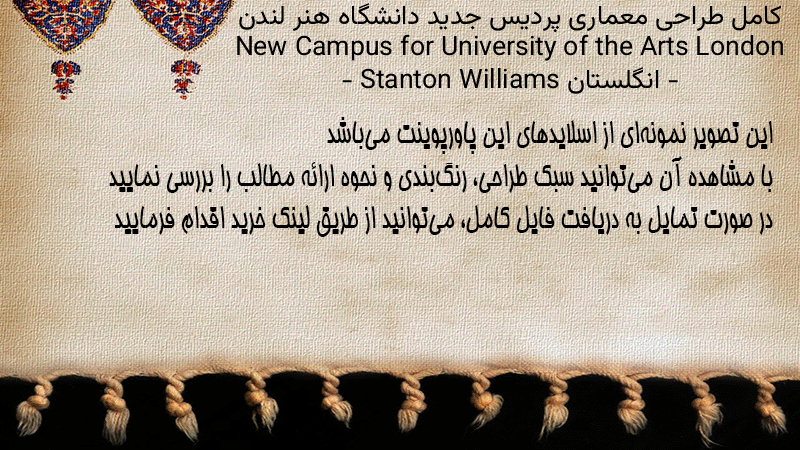 پاورپوینت کامل طراحی معماری پردیس جدید دانشگاه هنر لندن New Campus for University of the Arts London – انگلستان – Stanton Williams