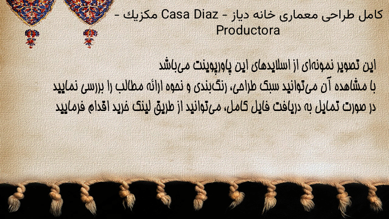 پاورپوینت کامل طراحی معماری خانه دیاز Casa Diaz – مکزیک – Productora