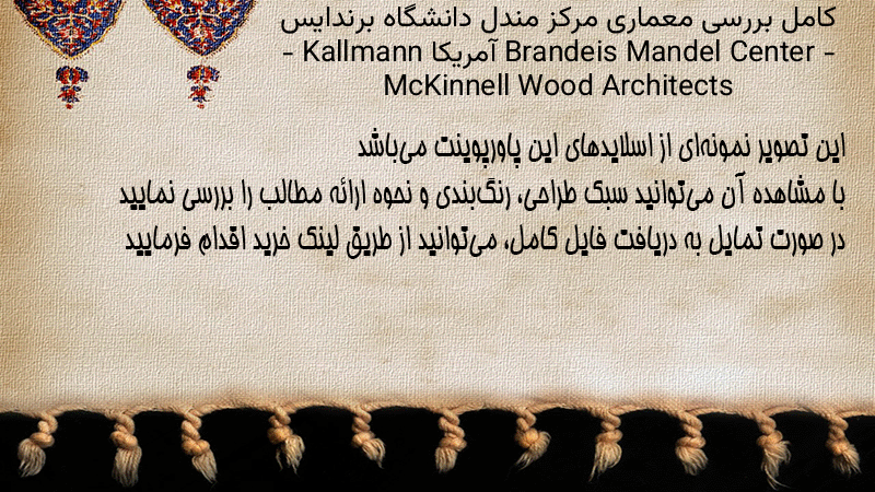 پاورپوینت کامل بررسی معماری مرکز مندل دانشگاه برندایس Brandeis Mandel Center – آمریکا – Kallmann McKinnell Wood Architects