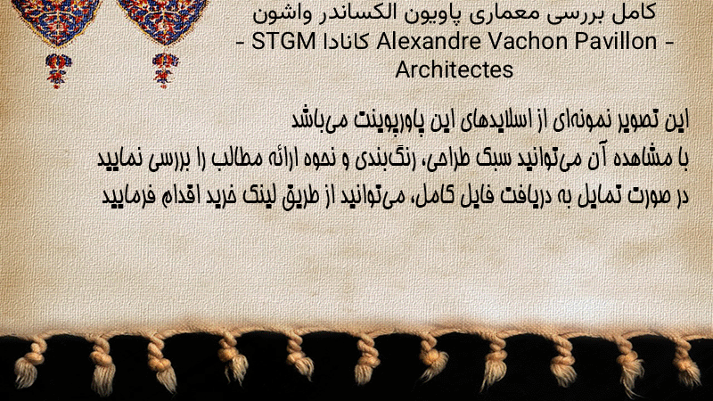 پاورپوینت کامل بررسی معماری پاویون الکساندر واشون Alexandre Vachon Pavillon – کانادا – STGM Architectes