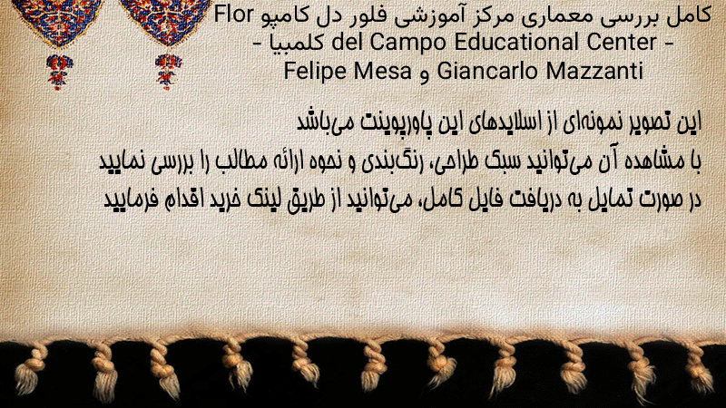 پاورپوینت کامل بررسی معماری مرکز آموزشی فلور دل کامپو Flor del Campo Educational Center – کلمبیا – Giancarlo Mazzanti و Felipe Mesa