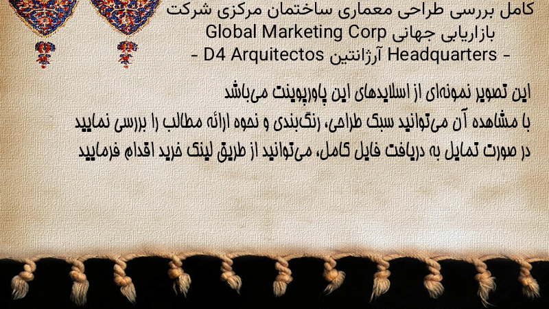 پاورپوینت کامل بررسی طراحی معماری ساختمان مرکزی شرکت بازاریابی جهانی Global Marketing Corp Headquarters – آرژانتین – D4 Arquitectos