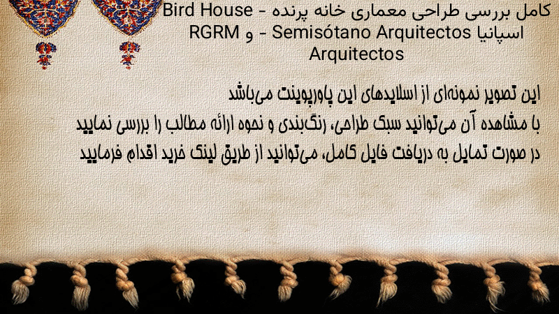 پاورپوینت کامل بررسی طراحی معماری خانه پرنده Bird House – اسپانیا – Semisótano Arquitectos و RGRM Arquitectos