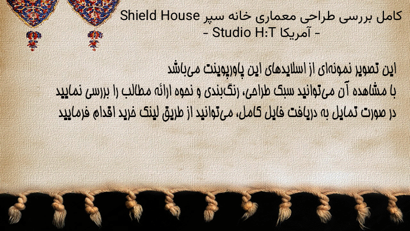 پاورپوینت کامل بررسی طراحی معماری خانه سپر Shield House – آمریکا – Studio H:T