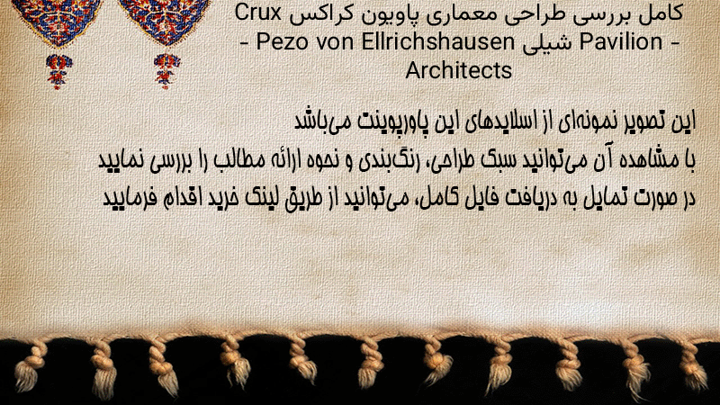 پاورپوینت کامل بررسی طراحی معماری پاویون کراکس Crux Pavilion – شیلی – Pezo von Ellrichshausen Architects