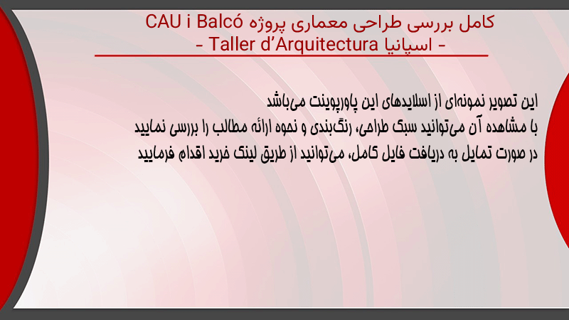 پاورپوینت کامل بررسی طراحی معماری پروژه CAU i Balcó – اسپانیا – Taller d’Arquitectura