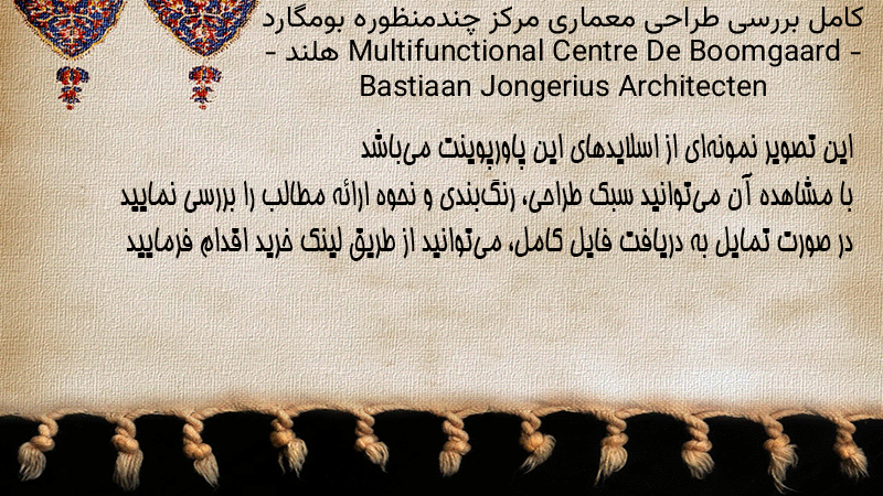 پاورپوینت کامل بررسی طراحی معماری مرکز چندمنظوره بومگارد Multifunctional Centre De Boomgaard – هلند – Bastiaan Jongerius Architecten