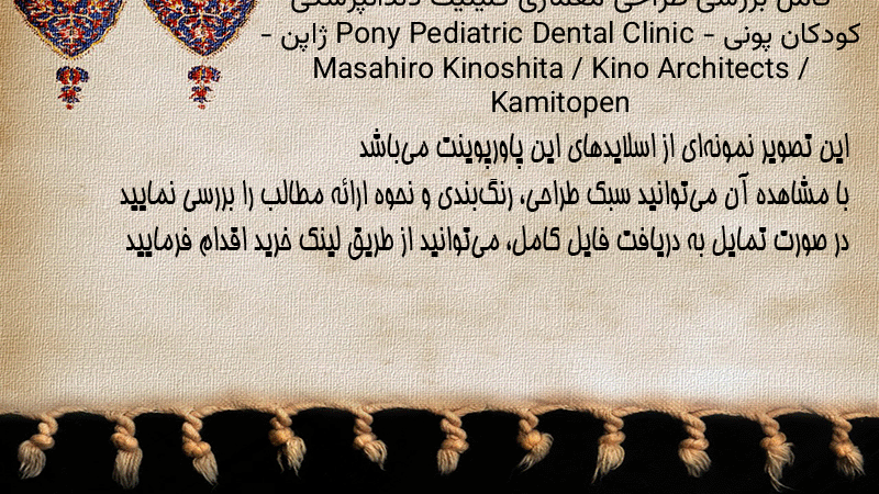 پاورپوینت کامل بررسی طراحی معماری کلینیک دندانپزشکی کودکان پونی Pony Pediatric Dental Clinic – ژاپن – Masahiro Kinoshita / Kino Architects / Kamitopen