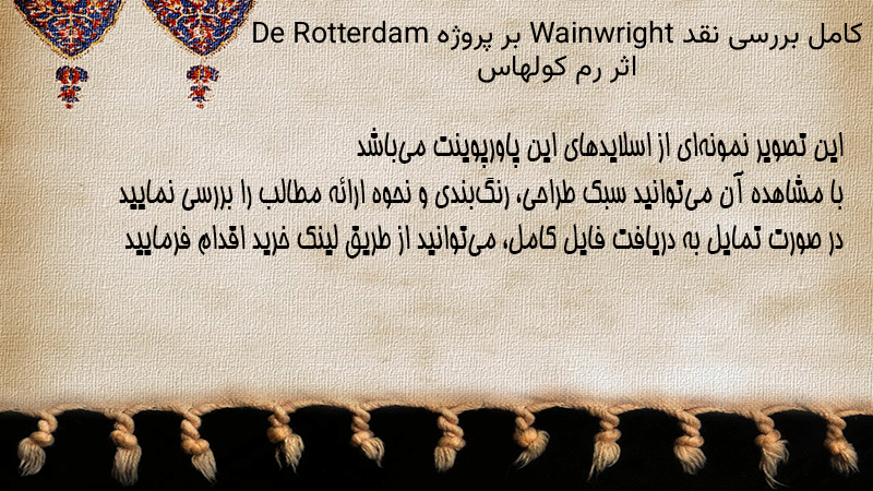 پاورپوینت کامل بررسی نقد Wainwright بر پروژه De Rotterdam اثر رم کولهاس
