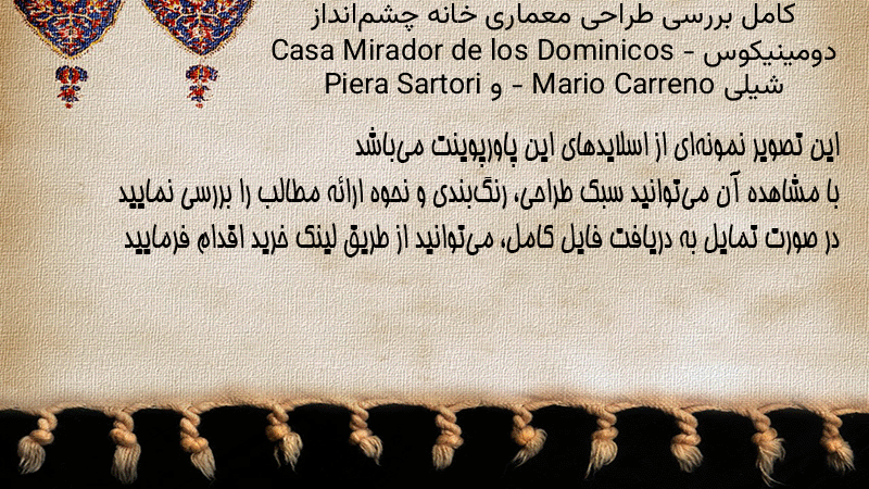 پاورپوینت کامل بررسی طراحی معماری خانه چشمانداز دومینیکوس Casa Mirador de los Dominicos – شیلی – Mario Carreno و Piera Sartori