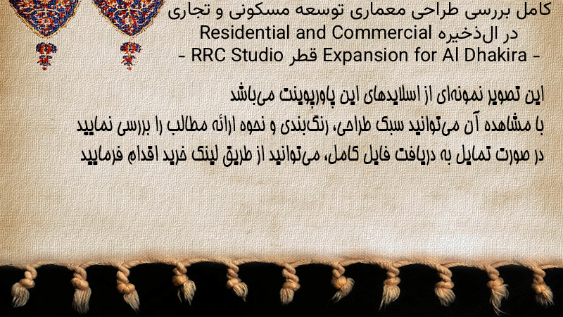 پاورپوینت کامل بررسی طراحی معماری توسعه مسکونی و تجاری در الذخیره Residential and Commercial Expansion for Al Dhakira – قطر – RRC Studio