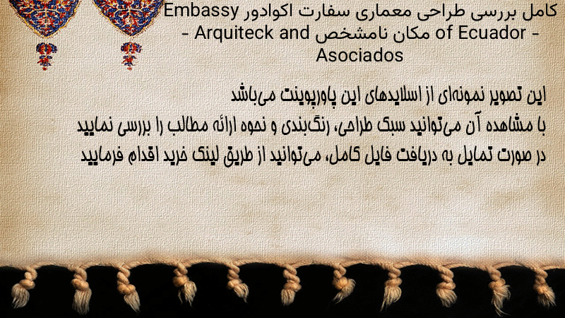 پاورپوینت کامل بررسی طراحی معماری سفارت اکوادور Embassy of Ecuador – مکان نامشخص – Arquiteck and Asociados