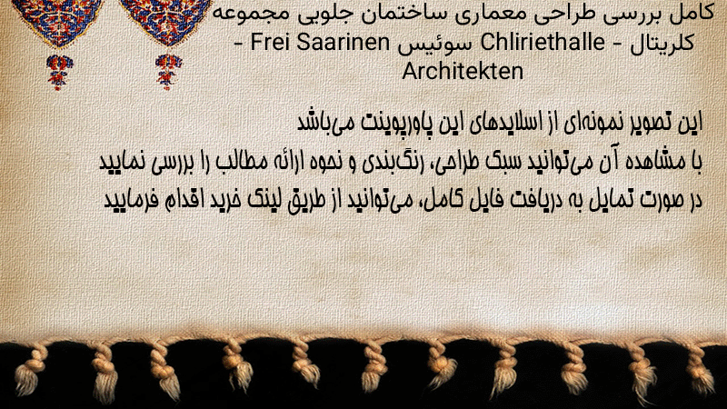 پاورپوینت کامل بررسی طراحی معماری ساختمان جلویی مجموعه کلریتال Chliriethalle – سوئیس – Frei Saarinen Architekten