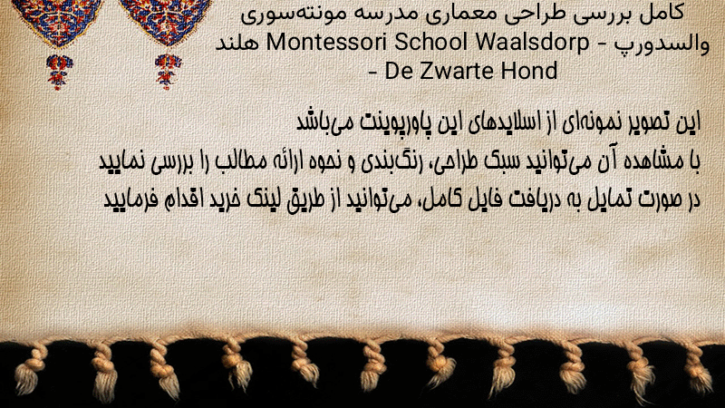 پاورپوینت کامل بررسی طراحی معماری مدرسه مونتهسوری والسدورپ Montessori School Waalsdorp – هلند – De Zwarte Hond