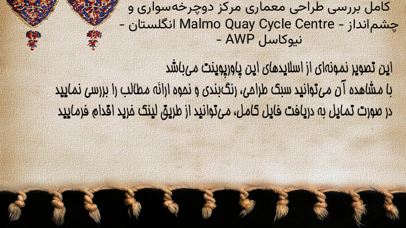 پاورپوینت کامل بررسی طراحی معماری مرکز دوچرخهسواری و چشمانداز Malmo Quay Cycle Centre – انگلستان – نیوکاسل – AWP