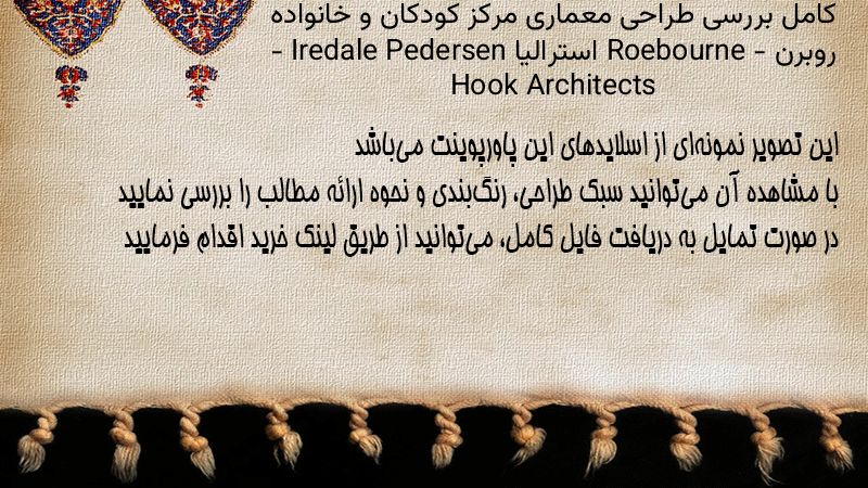 پاورپوینت کامل بررسی طراحی معماری مرکز کودکان و خانواده روبرن Roebourne – استرالیا – Iredale Pedersen Hook Architects