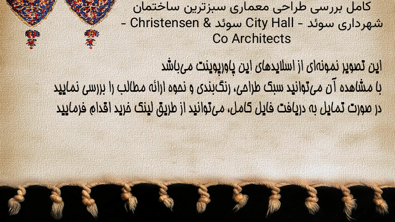 پاورپوینت کامل بررسی طراحی معماری سبزترین ساختمان شهرداری سوئد City Hall – سوئد – Christensen & Co Architects