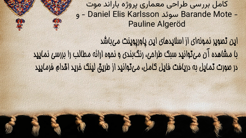 پاورپوینت کامل بررسی طراحی معماری پروژه باراند موت Barande Mote – سوئد – Daniel Elis Karlsson و Pauline Algeröd