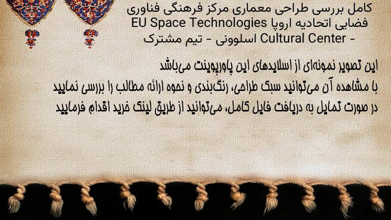 پاورپوینت کامل بررسی طراحی معماری مرکز فرهنگی فناوری فضایی اتحادیه اروپا EU Space Technologies Cultural Center – اسلوونی – تیم مشترک