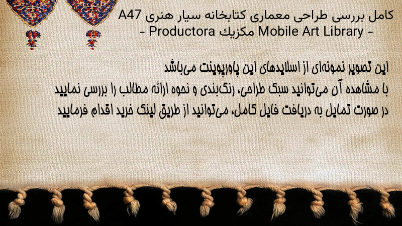 پاورپوینت کامل بررسی طراحی معماری کتابخانه سیار هنری A47 Mobile Art Library – مکزیک – Productora