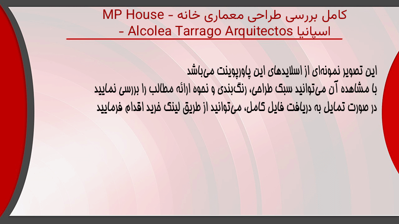 پاورپوینت کامل بررسی طراحی معماری خانه MP House – اسپانیا – Alcolea Tarrago Arquitectos