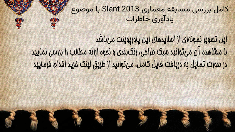 پاورپوینت کامل بررسی مسابقه معماری Slant 2013 با موضوع یادآوری خاطرات