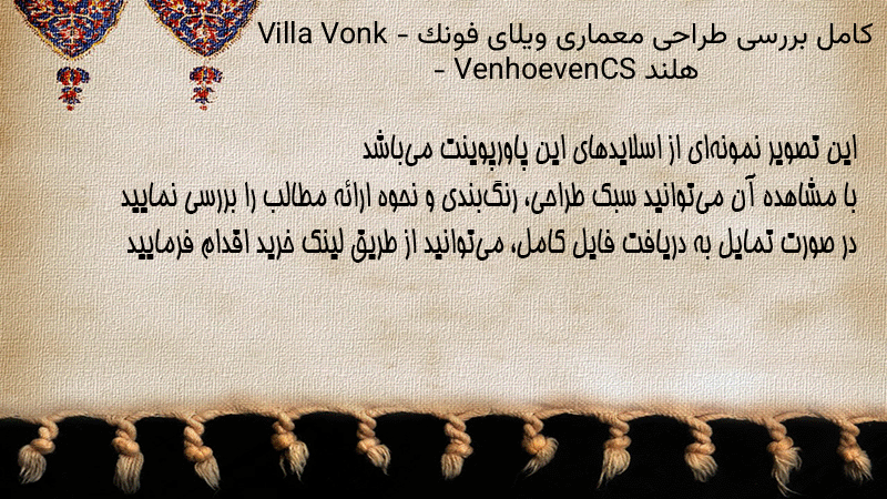 پاورپوینت کامل بررسی طراحی معماری ویلای فونک Villa Vonk – هلند – VenhoevenCS