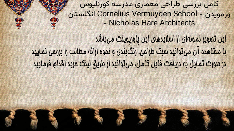 پاورپوینت کامل بررسی طراحی معماری مدرسه کورنلیوس ورمویدن Cornelius Vermuyden School – انگلستان – Nicholas Hare Architects