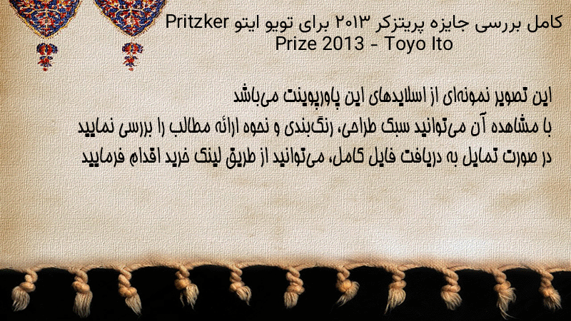 پاورپوینت کامل بررسی جایزه پریتزکر ۲۰۱۳ برای تویو ایتو Pritzker Prize 2013 – Toyo Ito