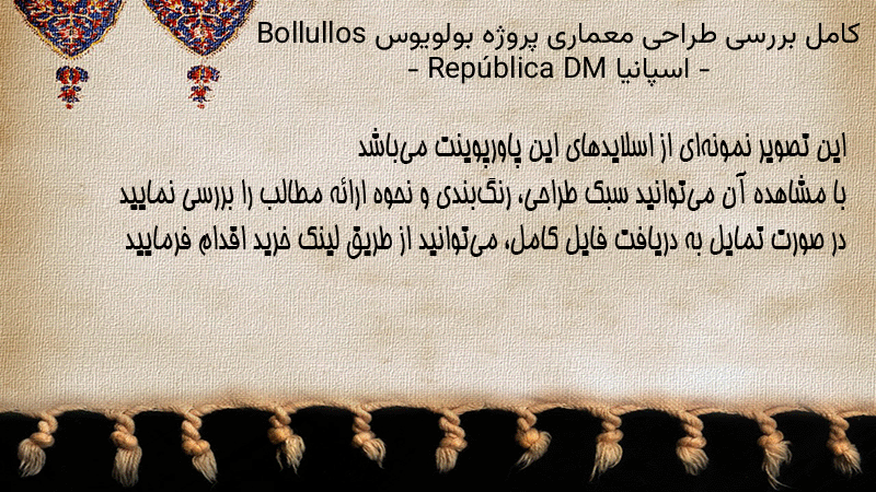 پاورپوینت کامل بررسی طراحی معماری پروژه بولویوس Bollullos – اسپانیا – República DM