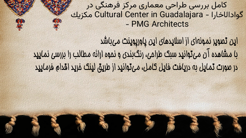 پاورپوینت کامل بررسی طراحی معماری مرکز فرهنگی در گوادالاخارا Cultural Center in Guadalajara – مکزیک – PMG Architects