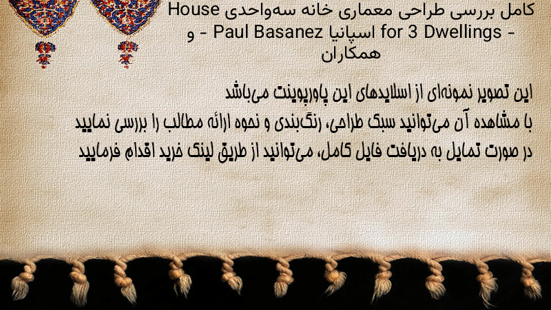 پاورپوینت کامل بررسی طراحی معماری خانه سهواحدی House for 3 Dwellings – اسپانیا – Paul Basanez و همکاران